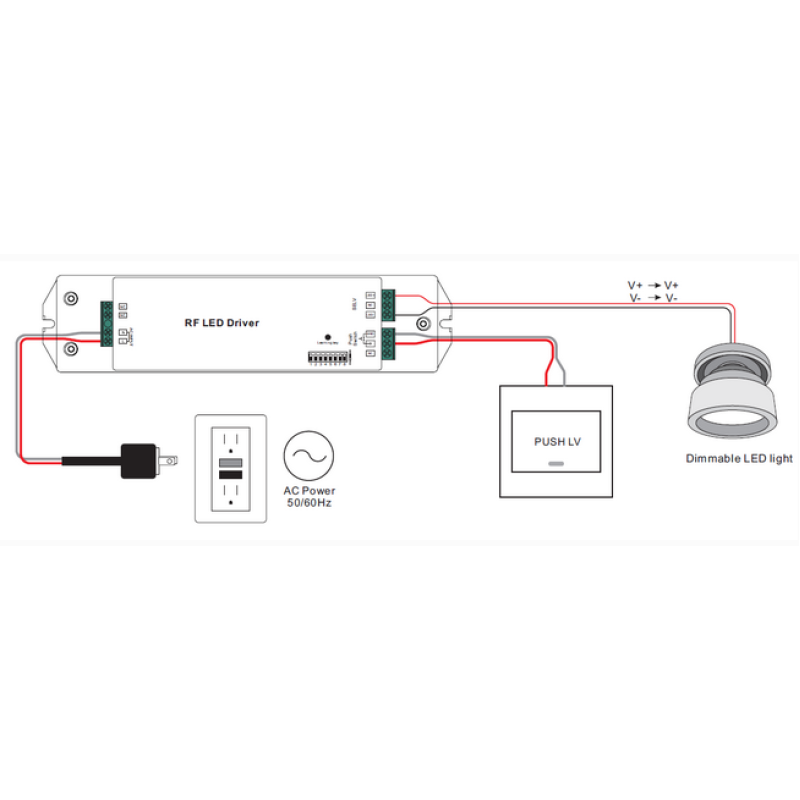 ID:31909 Constant Current Dimmējams barošanas bloks ar RF kontrolieri Jauda: 50W Ienākošais Spriegums:200-240V~ 50/60Hz Izejošais Spriegums: 12V 5A Izmēri: 241x43x30mm IP Protokols: IP54 Korpusa Materiāls: PC Constant Voltage Īssavienojuma aizsardzība.