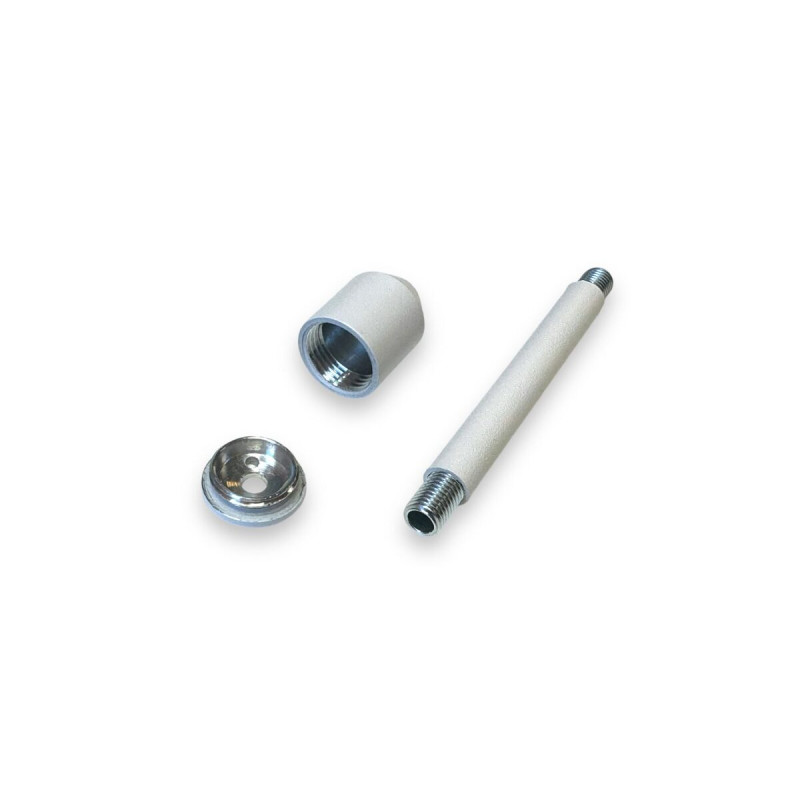 ID:00312 Materiāls: Dzelzs Krāsa: Melna/Balta Caurumi: 2 (Skrūvei un vadam D2.2mm) Izmēri: Bāze:D20xH28mm, Kāja:D9.5xH98(ar bāzi)mm (skat.attēlu) Sertifikāti: CE,RoHS