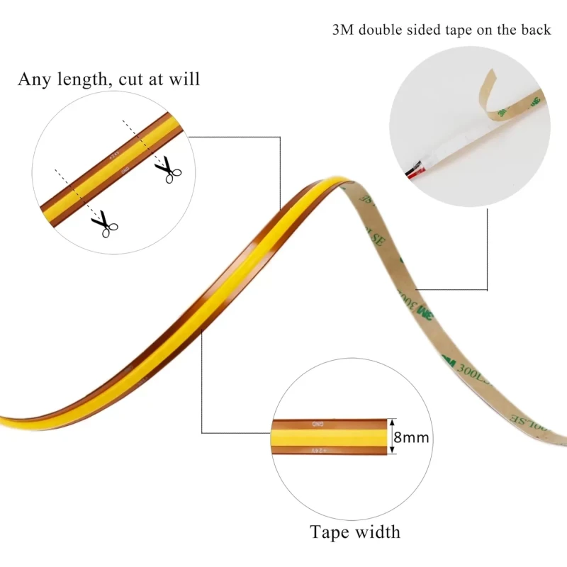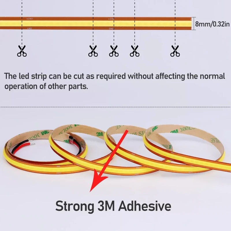 Jūsu iepirkumu grozs ir tukšs! 11W/m Jebkur nogriežama (cut anywhere) COB LED Lenta 24V
