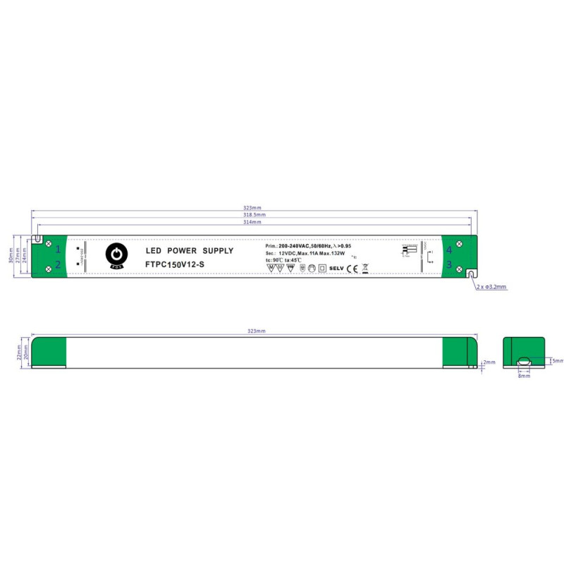 150W LED Barošanas bloks 12V 24V Garantija 5 gadi EU