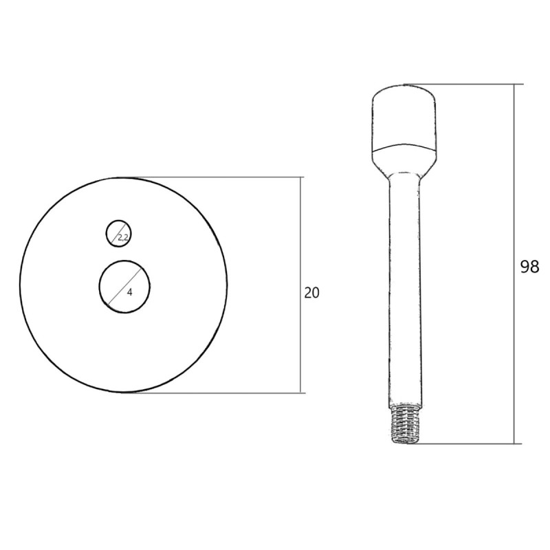 (Skrūvei un vadam D2.2mm) Izmēri: Bāze:D20xH28mm, Kāja:D9.5xH98(ar bāzi)mm
