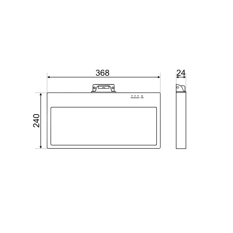 1.8AH, 3 Stundas avārijas režīmā Izmēri: 368x240x24mm IP