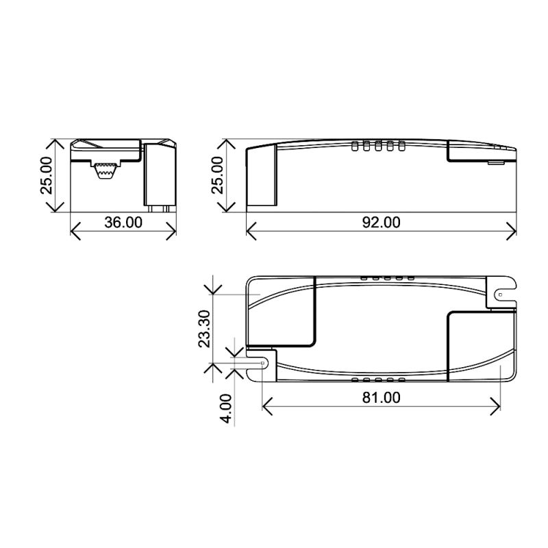 Spriegums: 30-42V 250mA 0.15A Izmēri: 92x36x25mm IP Protokols: