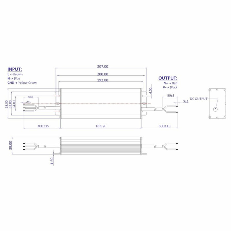Izmēri: 207x68x39 mm