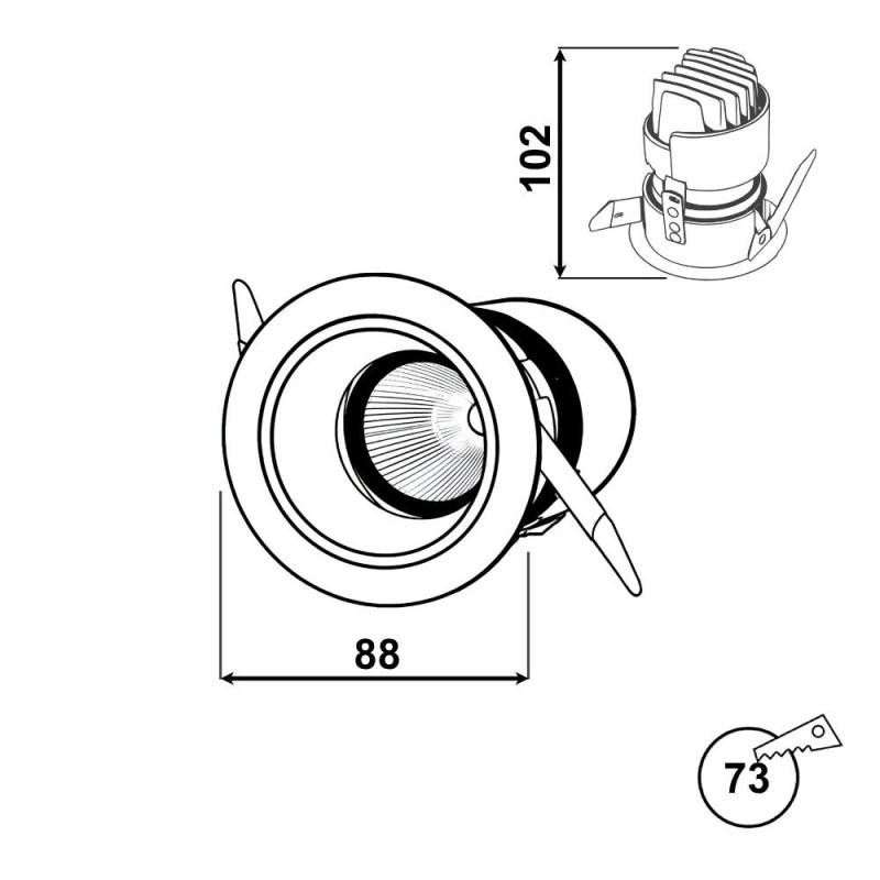 Izmēri:D88xH102mmmm (Iegriežamais – D73mm)