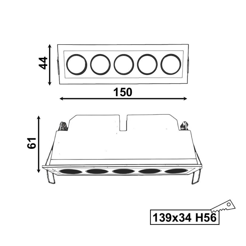 Izmēri: 150x44x61mm (Iegriež. 139x34mm, H56mm)