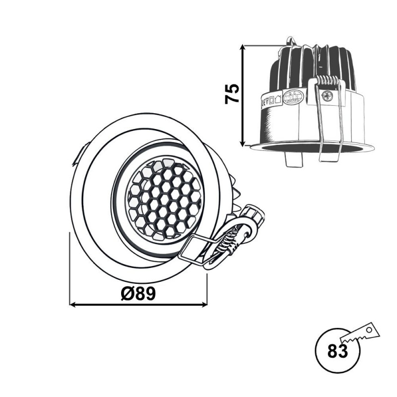 Regulējams Iebūvējams IP65 LED Gaismeklis ar Pretapžilbināšanas filtru AIP-IF10H