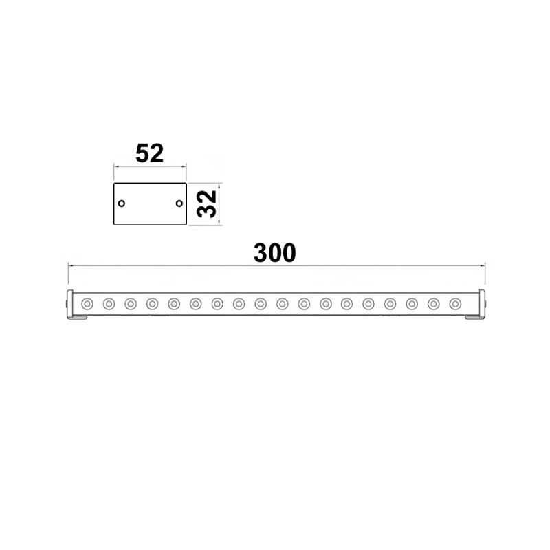 (100lm/W) Spriegums: 24V Izmēri: 300x32x52mm IP