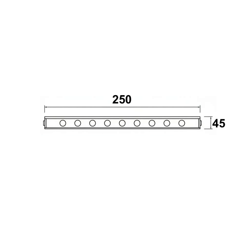 (100lm/W) Spriegums: 24V Izmēri: 250x45x70mm IP