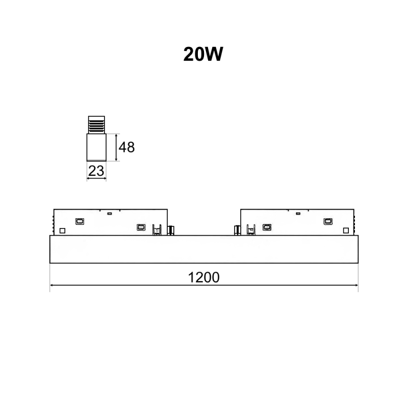 Magnētiskās sistēmas CLASSIC LED Gaismeklis AIP-OP Jauda: AIP-OP5, 5W, 300x23x48mm Dimmējams: Jā
