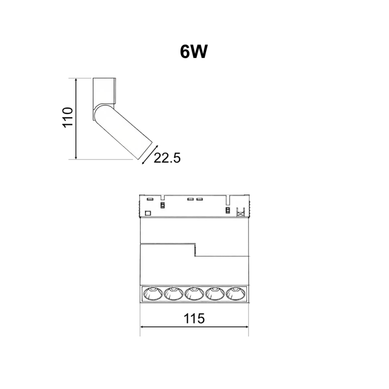 Magnētiskās sistēmas CLASSIC LED Gaismeklis AIP-RG Jauda: 6W, 115x22.5x110mm