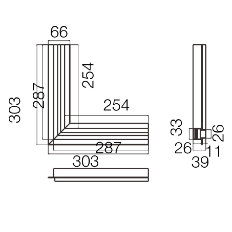 MINI Magnētiskās sliedes SQUARE Horizontāls stūra savienojums AIP-HS90