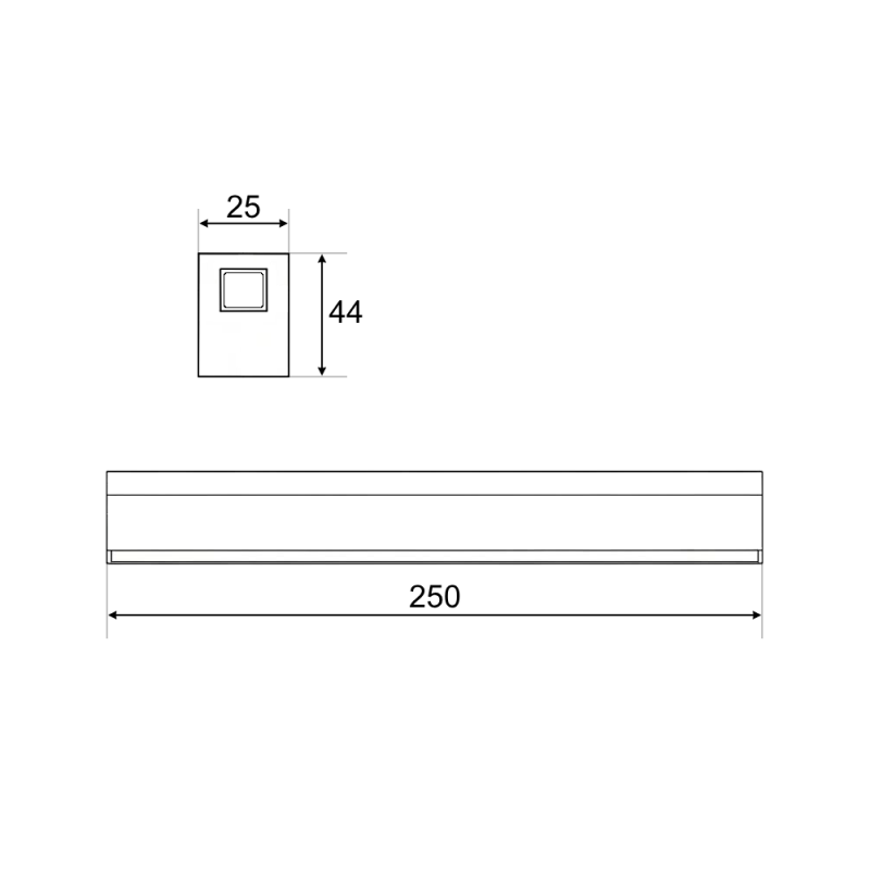 Izmēri:250x25x44mm Gaismas stara leņķis: 120° IP Protokols: