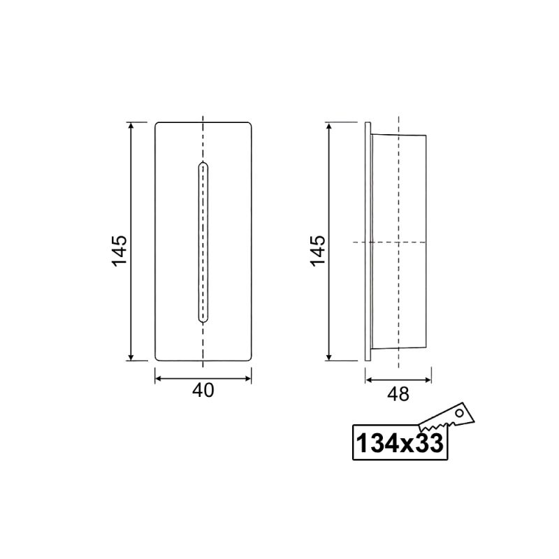 Izmēri: 145x40x48mm (skat. attēlu)